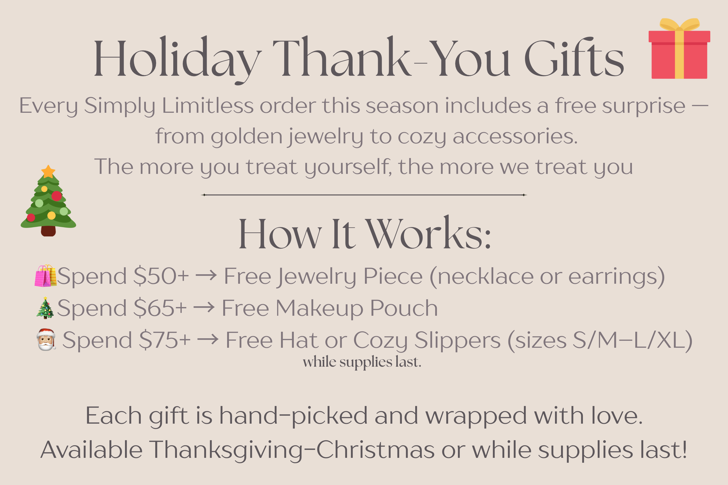 Please note: Holiday seasons may cause shipping delays with USPS. If you need to upgrade your shipping, reach out to us at simplylimitlessboutique@gmail.com, and we’ll do our best to accommodate you!