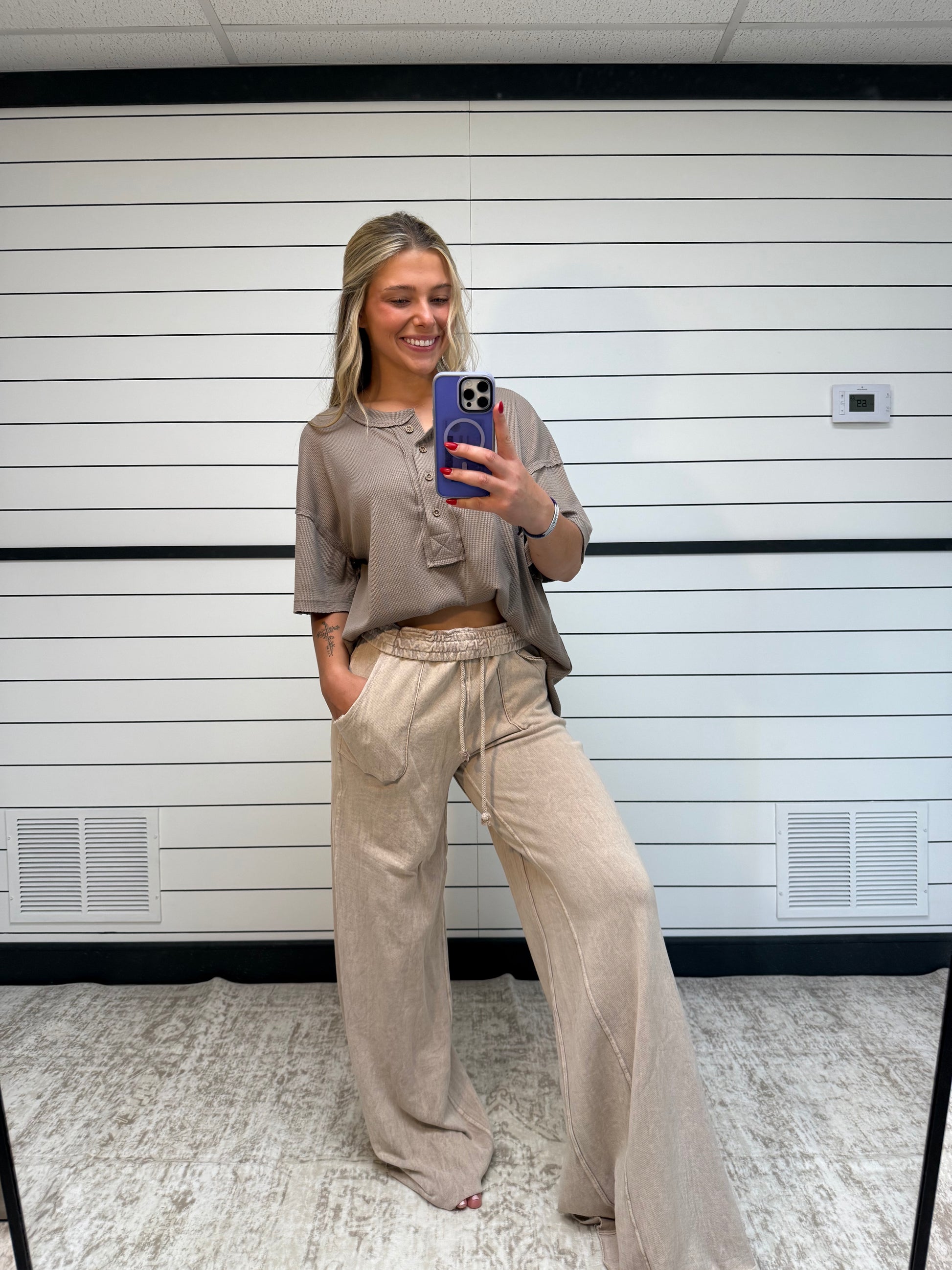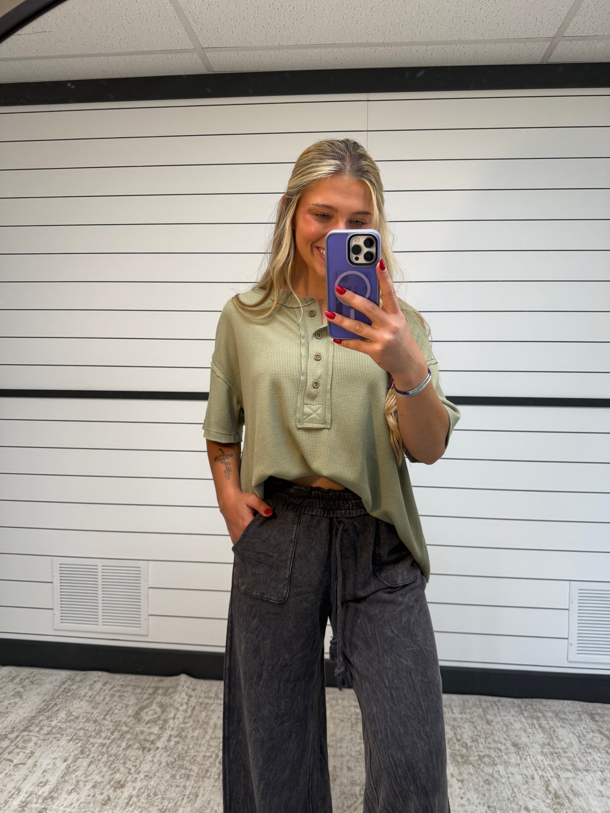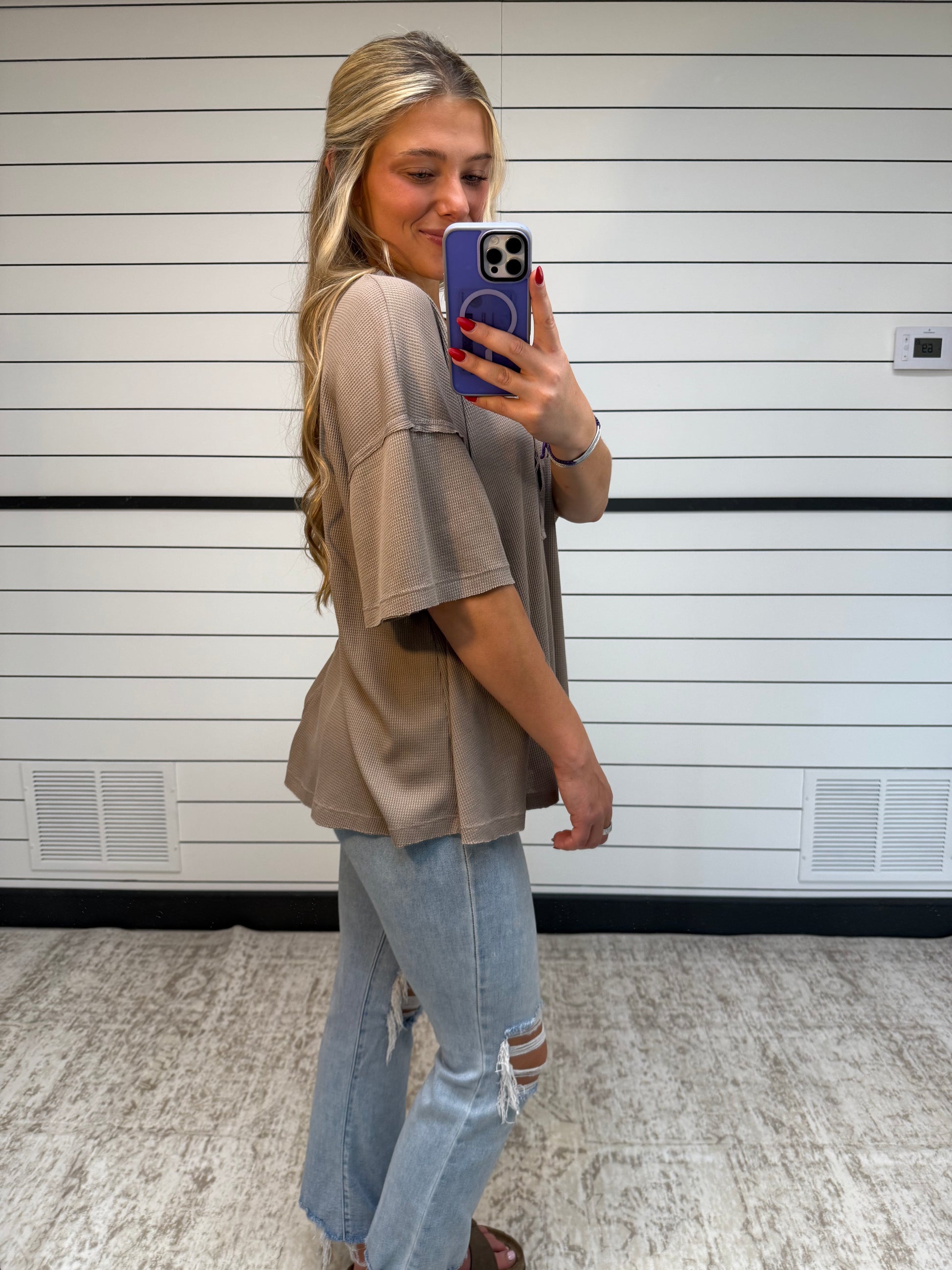 Easy, effortless, and made for your everyday lineup. The Hayes Waffle Knit Tee brings that relaxed, lived-in feel with a touch of elevated texture. Designed with a soft waffle knit fabric, dropped shoulders, and a raw-edge finish, it has that perfectly undone vibe you’ll want to wear on repeat. The half-button neckline adds just enough structure, making it simple to style tucked, layered, or loose — no effort required.