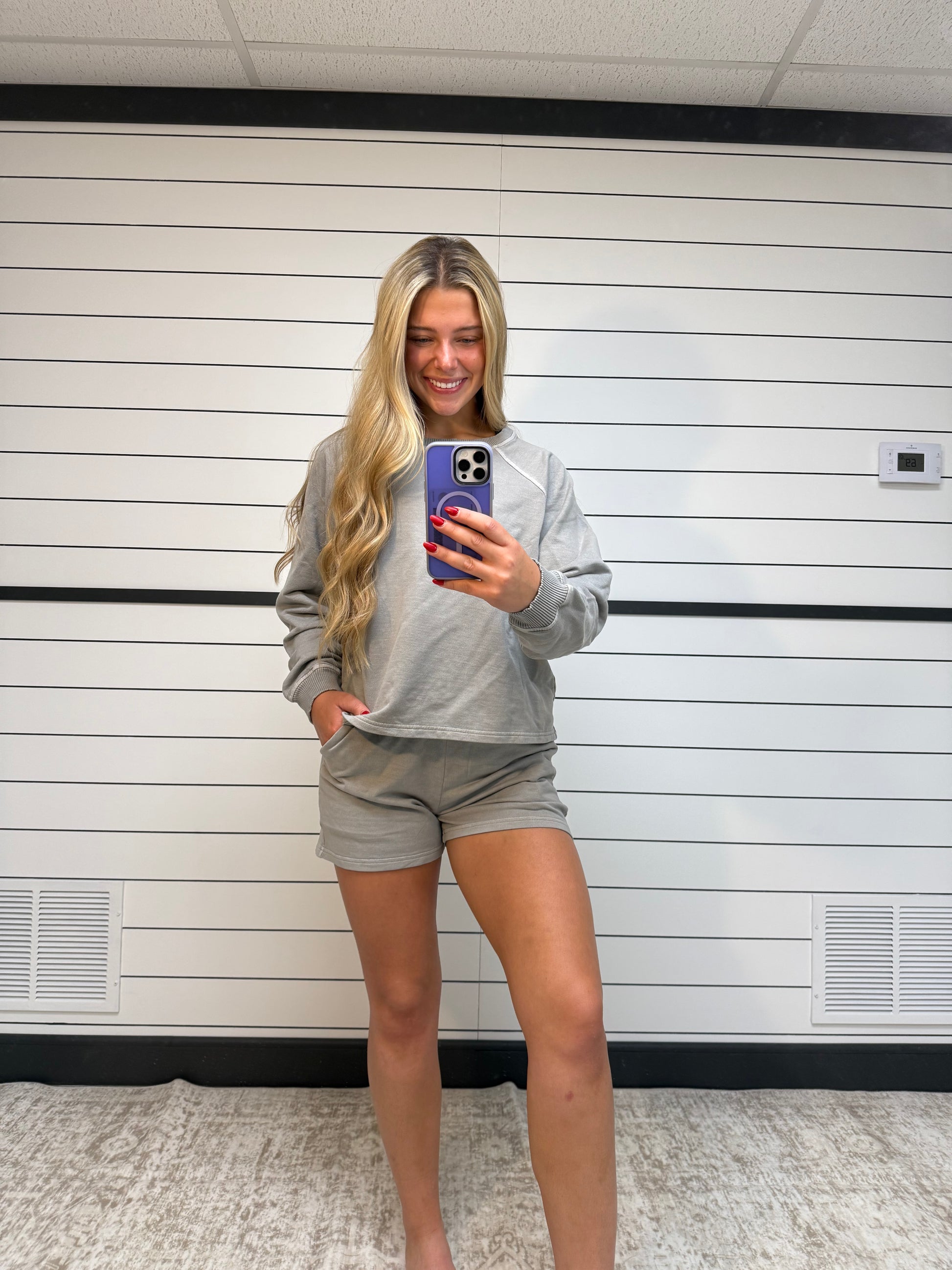Relaxed, simple, and easy to wear. This two-piece set was made for slow mornings and casual days out. The top has a semi-cropped fit with soft ribbed detailing, and the matching shorts have a thick, stretchy waistband that keeps things comfy while still flattering your shape. Made from lightweight french terry with a washed finish, it feels breathable, cozy, and perfectly broken-in. Style it together or mix and match for everyday ease.